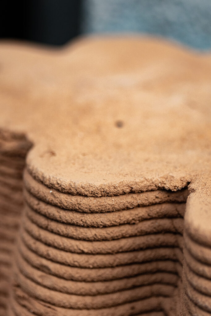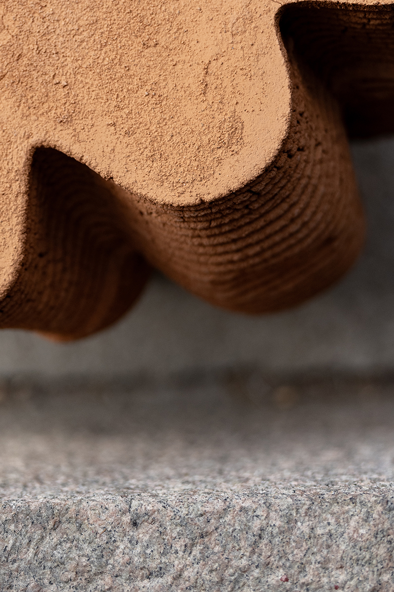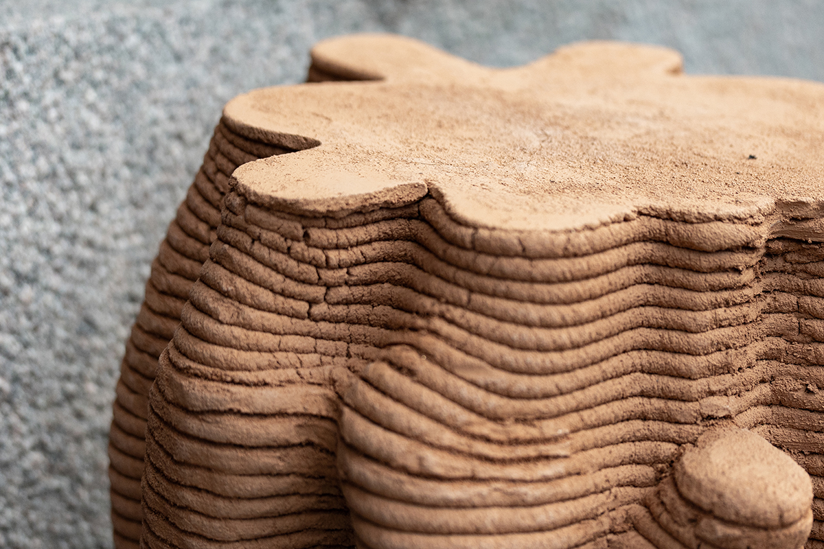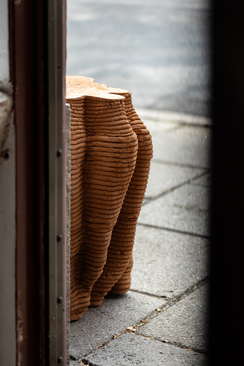 Moba is an outdoor stool created through large-scale robotic 3D printing in collaboration with architect Anton Tetov Johansson. Crafted from clay, the piece is printed in layers and then kiln-fired, combining digital fabrication techniques with traditional ceramic processes. The form is produced through procedural design.