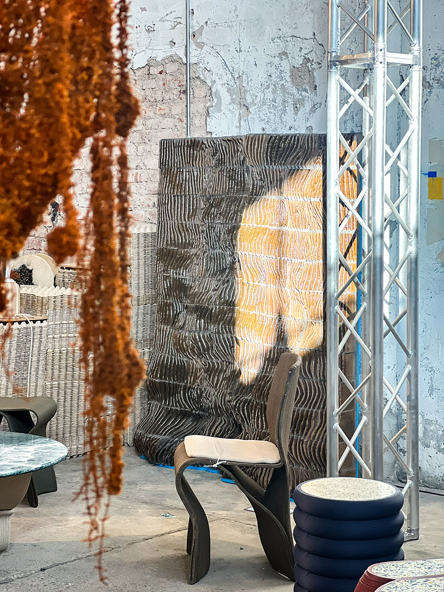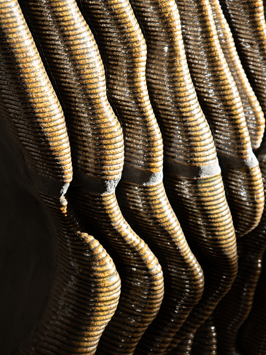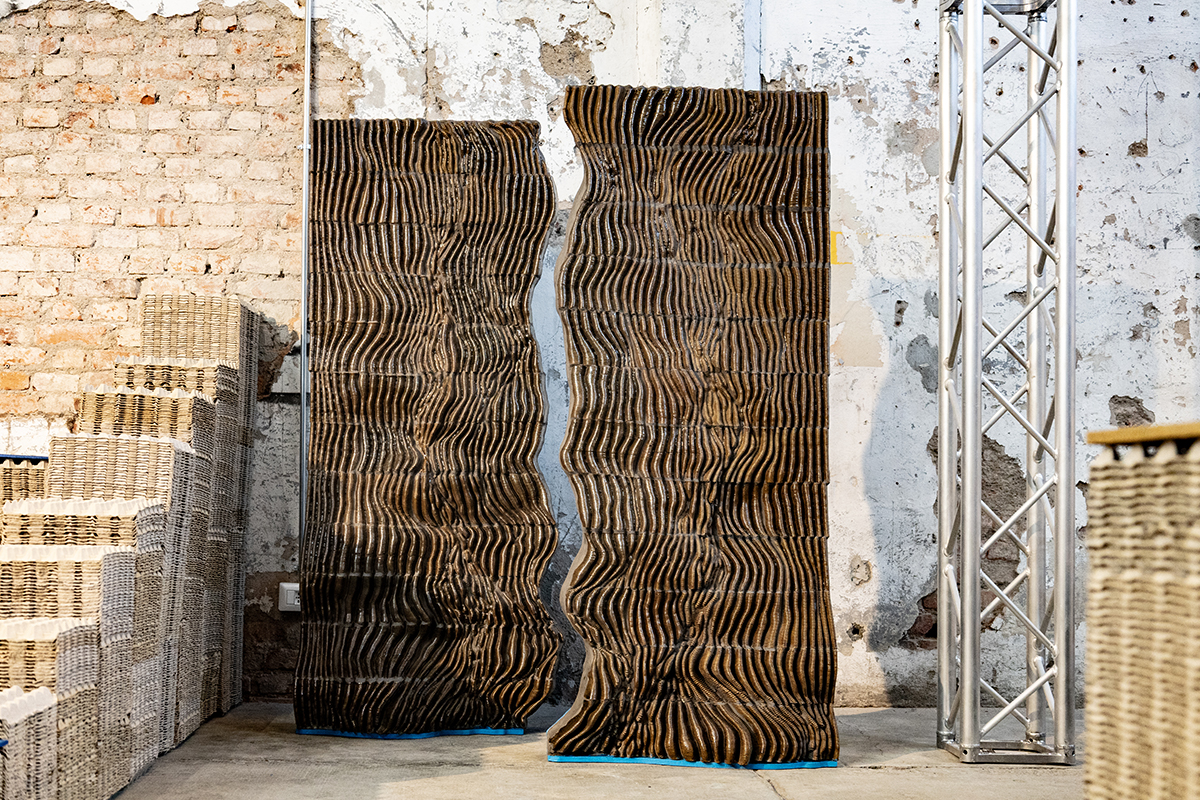 The Pyr Wall, exhibited at Milan Design Week 2024, is an architectural piece situated at the intersection of technology and craft. It presents an organic ceramic tapestry that challenges the traditional boundaries between tile and brick.