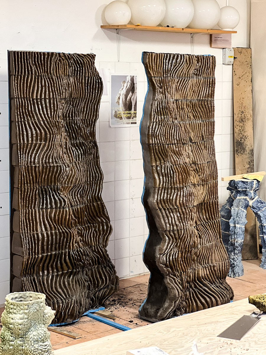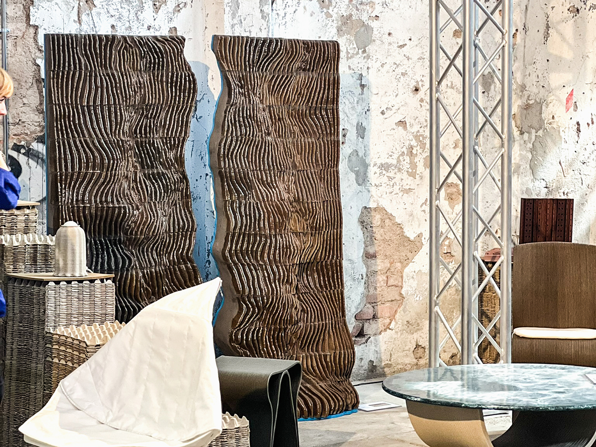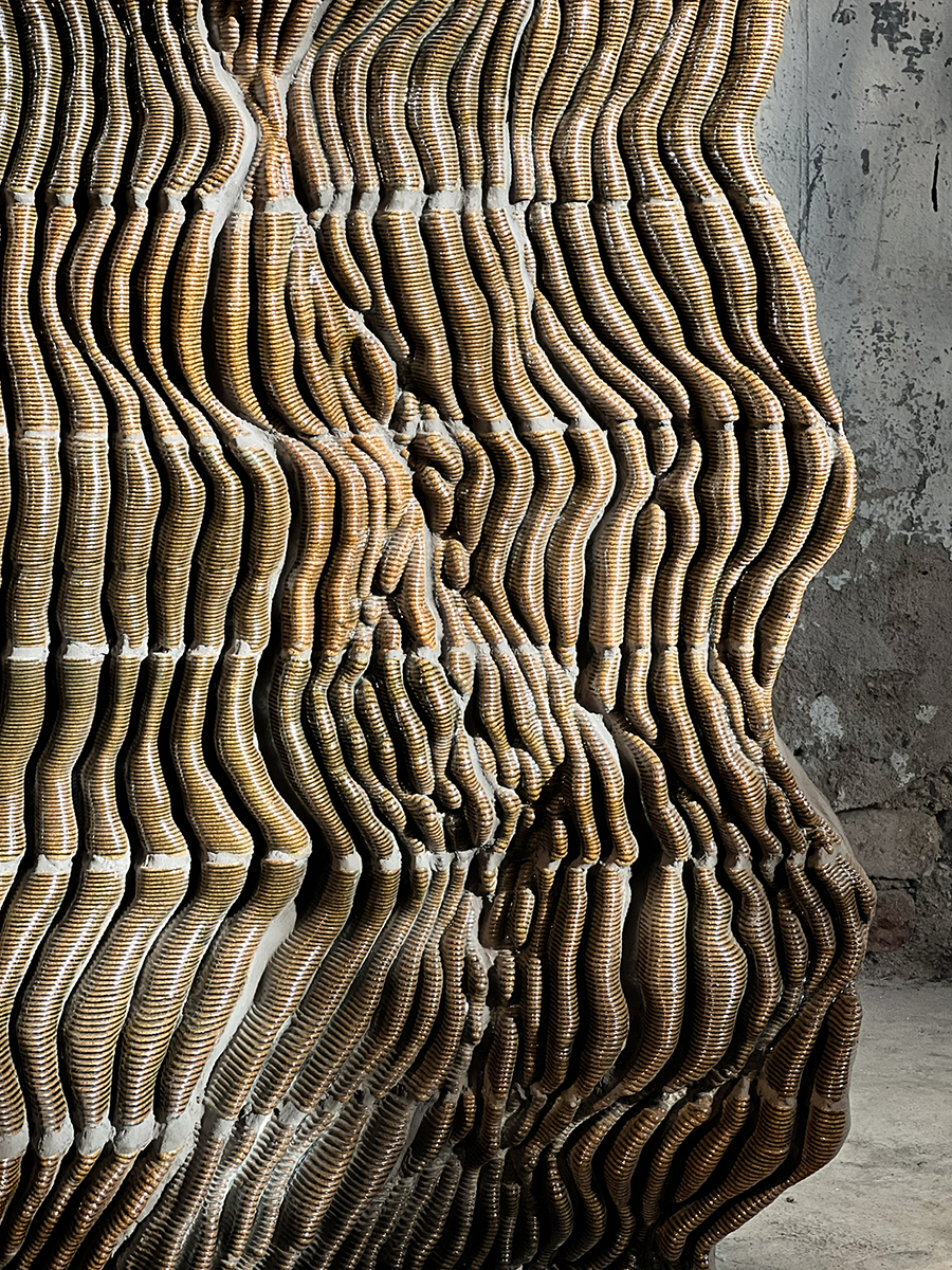 The Pyr Wall, exhibited at Milan Design Week 2024, is an architectural piece situated at the intersection of technology and craft. It presents an organic ceramic tapestry that challenges the traditional boundaries between tile and brick.