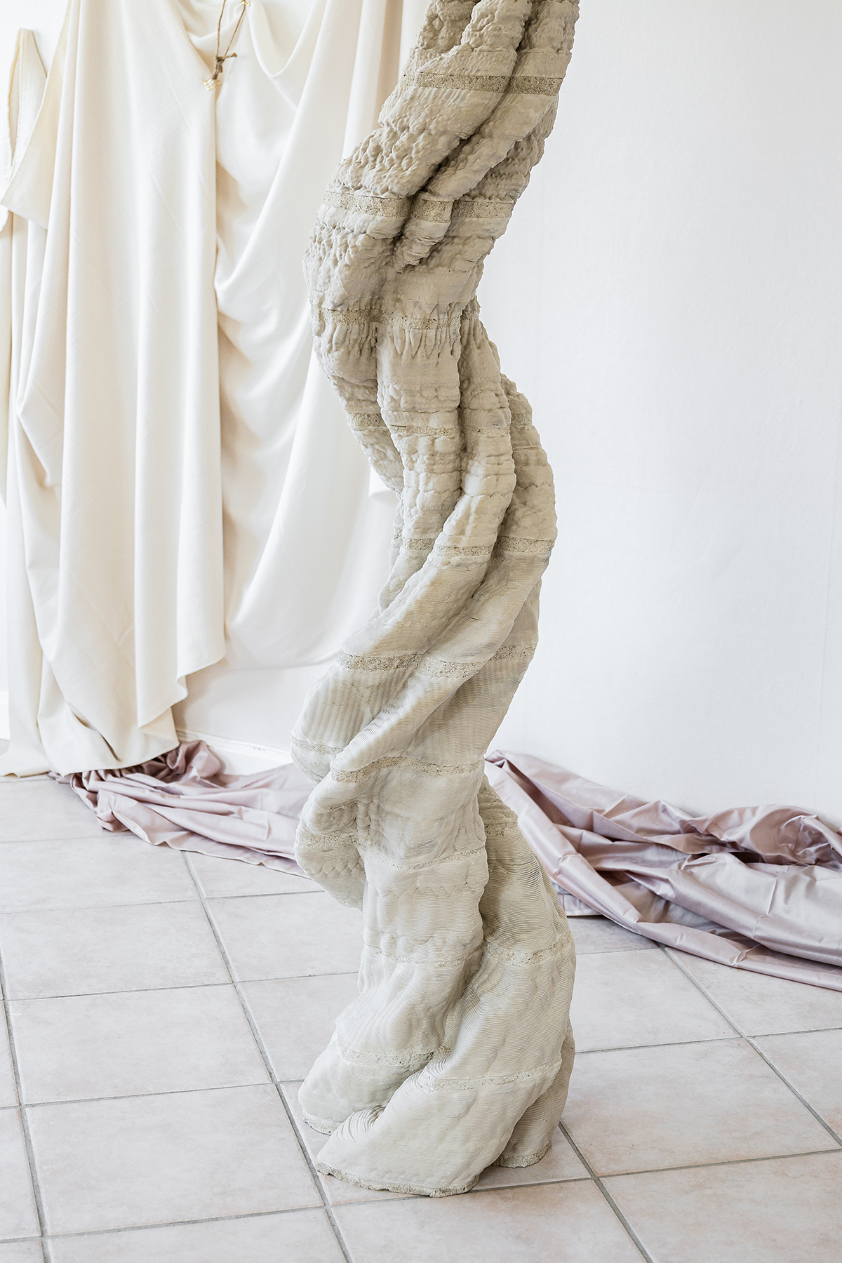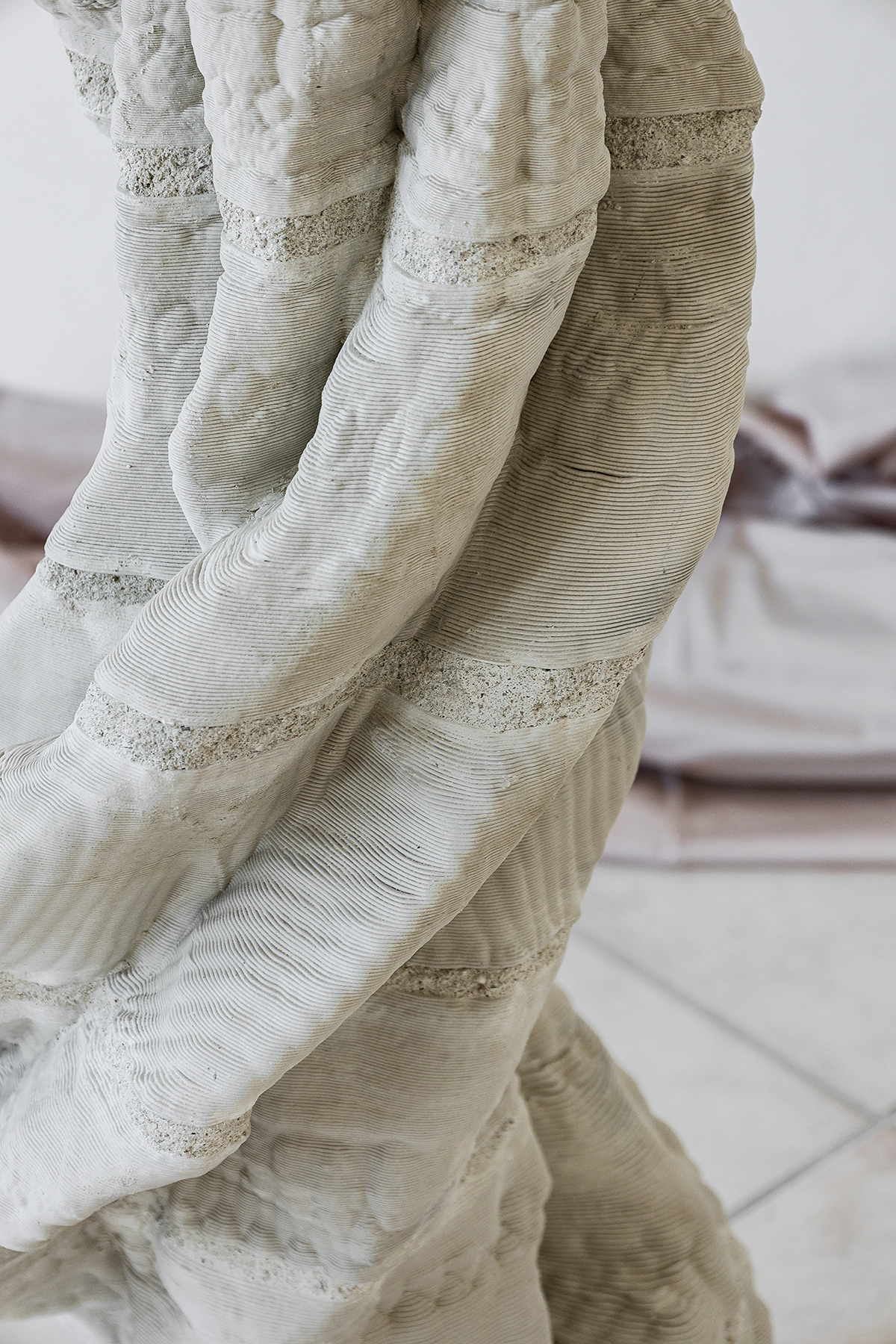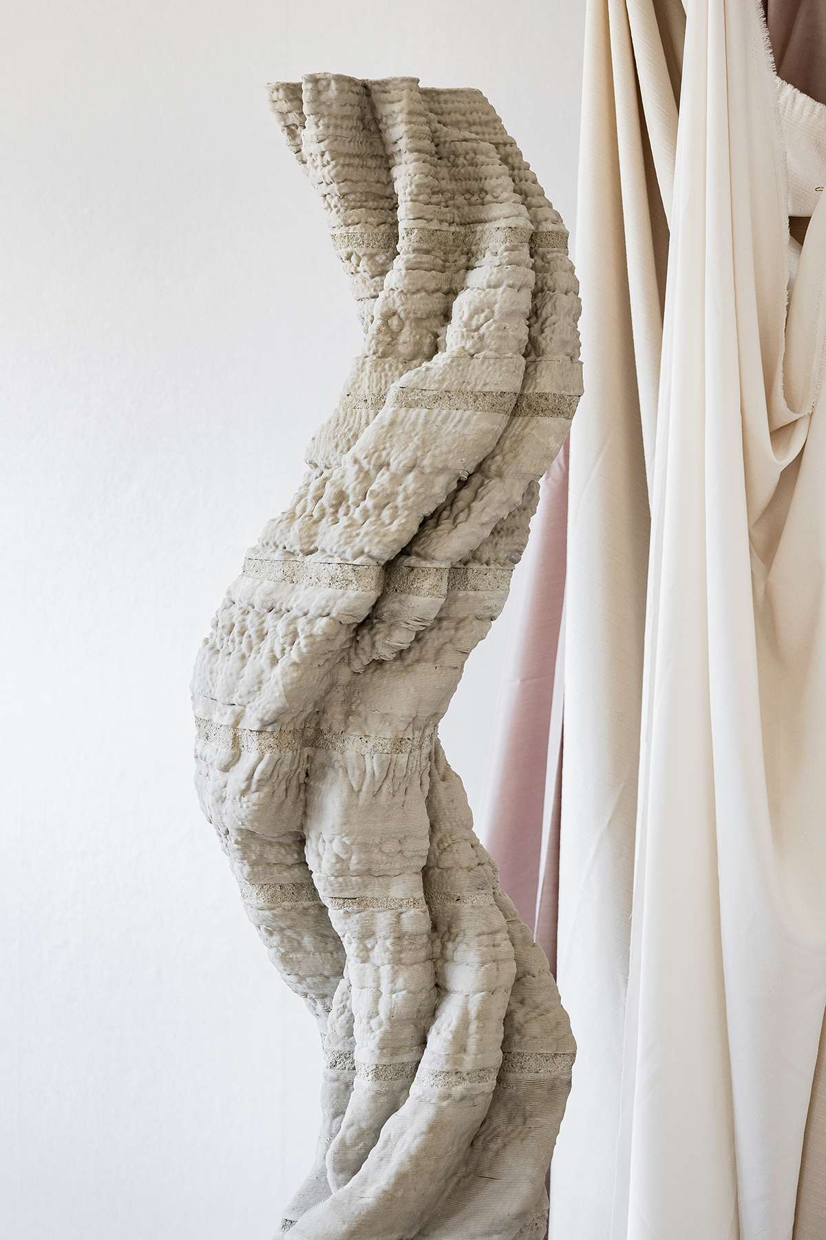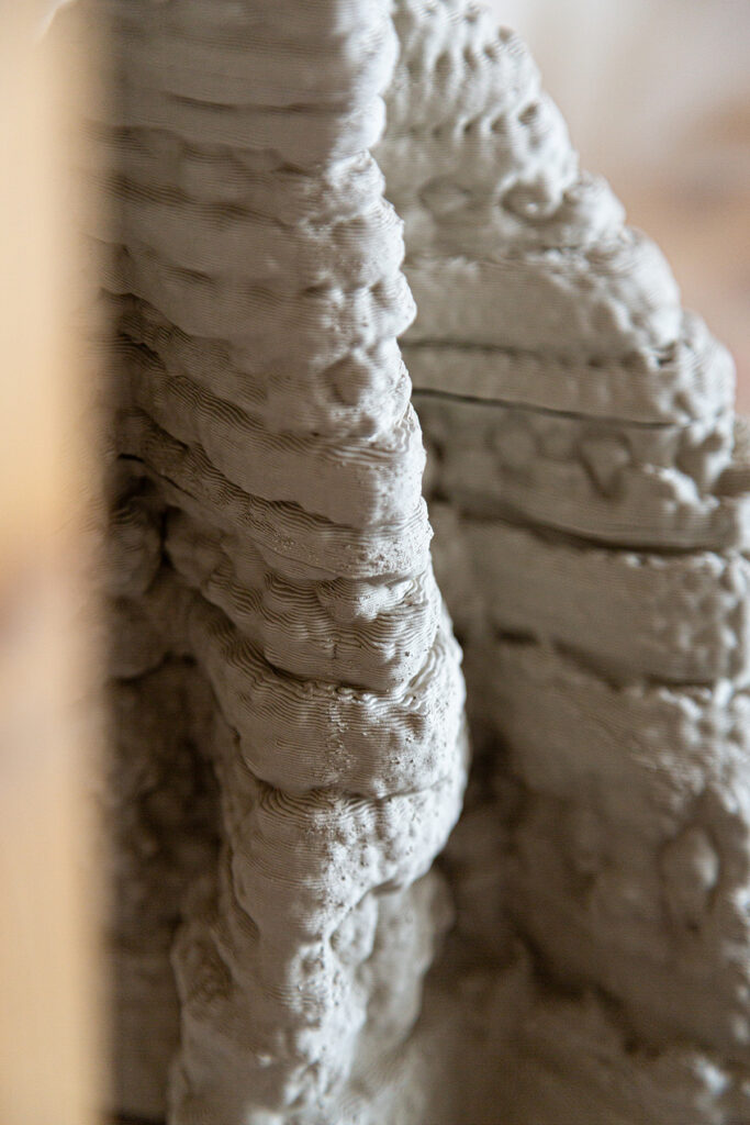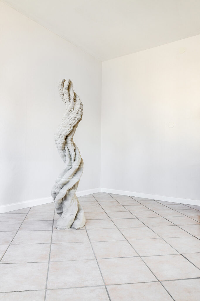 Twisted Column I is the first iteration in the series. It consists of 12 individual 3D-printed ceramic bricks. As the column rises, the resolution of both the digital file and the print line gradually increases, creating a subtle transformation in texture and detail from base to top.